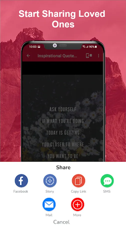 Motivation and Inspirational Quotes allows to download Quotes to your mobile and share the quotes with your friends on social networks including Facebook, Whatsapp, Instagram and Twitter.