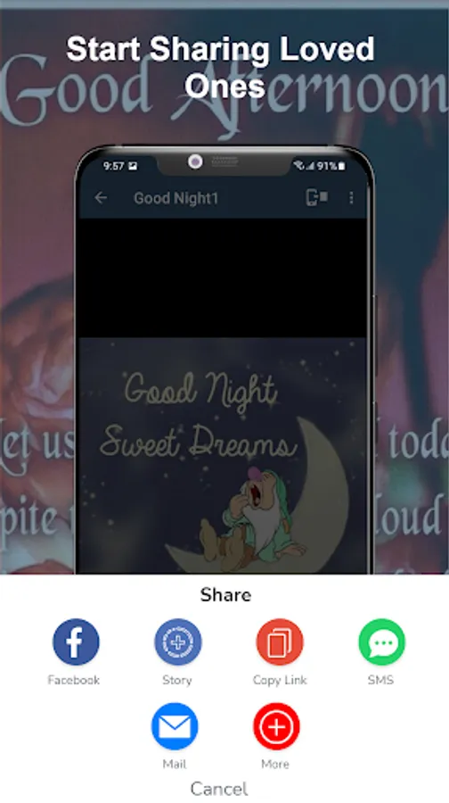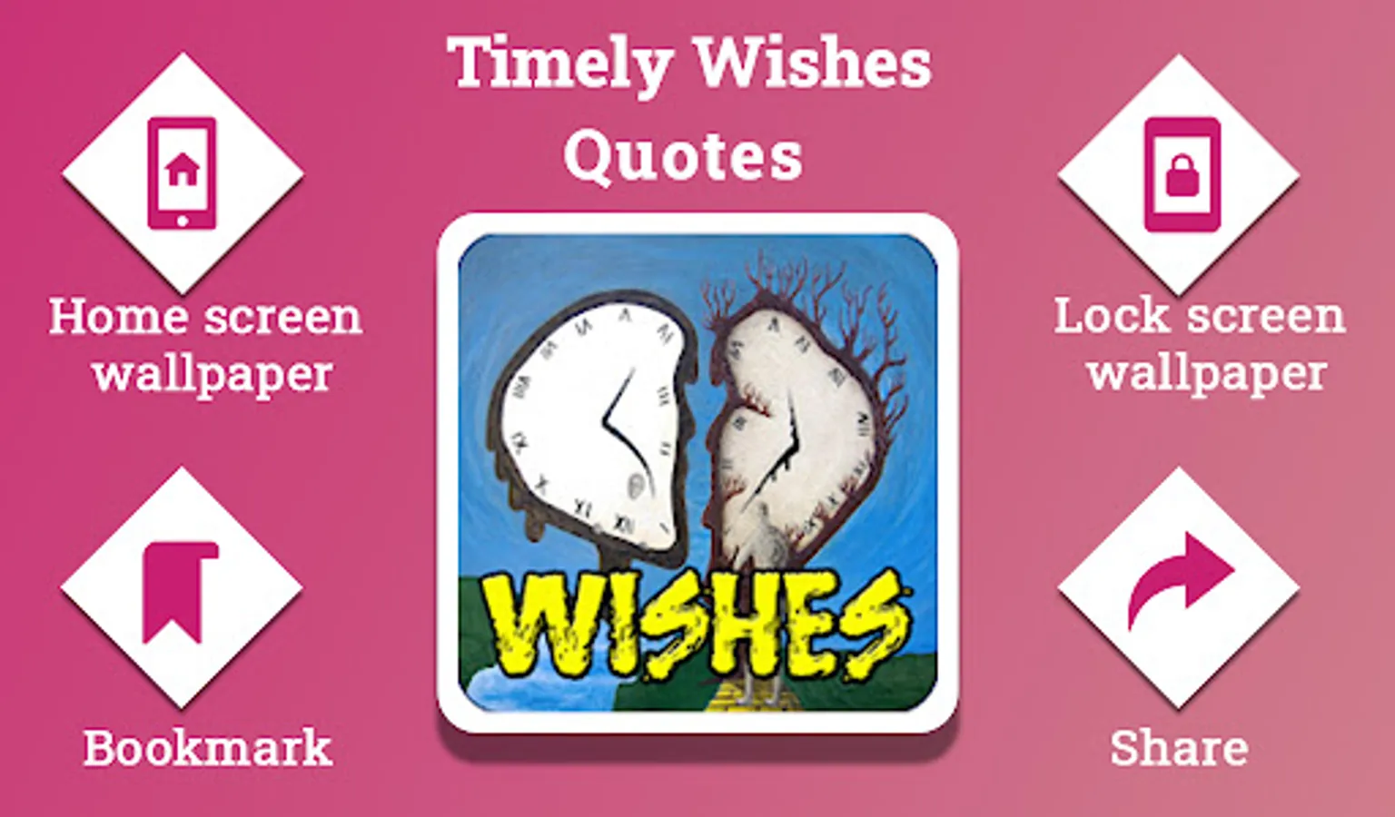Timely Wishes allows one tap to download Quotes to your mobile and share any contents with your friends on social networks including Facebook, Whatsapp, Instagram and Twitter as text or image format.
