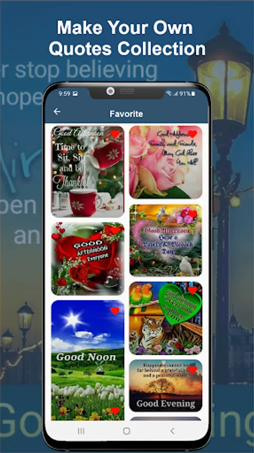 Keep a separate list of your Favorite Quotes! and set your favorite time for receiving the daily Timely Wishes.