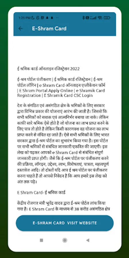 In this App you will find the service which is available in the following official public domains. https://eshram.gov.in/ Because the official website is loaded in this application. But this application is not official.