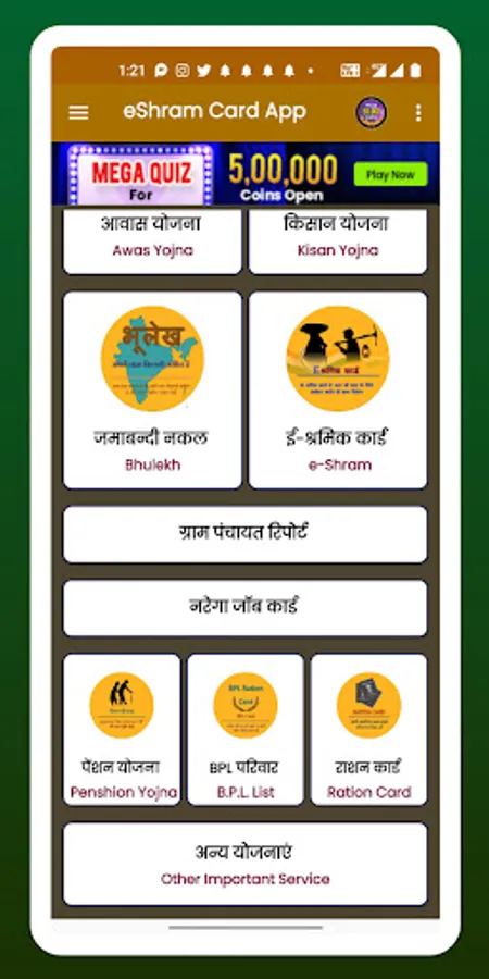2.E-Shram Card - https://register.eshram.gov.in/#/user/self