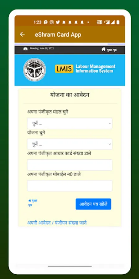 To apply for e - Shram card online, first, open this app choose the second option which option is New Registration.