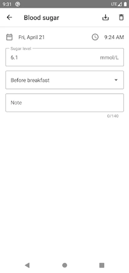 The Diabetes Tracker app follows the Material Design guidelines. Besides, it was created by a medical practitioner, so the interpretation of blood glucose results deserves the patients’ complete confidence.