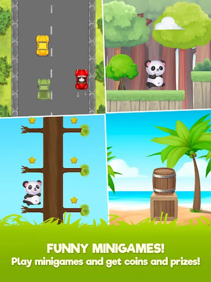 He needs you to adopt him and look after him. Feed him, play with him, tickle him…! Customize your little Coco and make him a unique and lovely Panda. Will you keep him healthy and happy? Moreover, there are 12 free funny minigames and a collectible sticker album!
