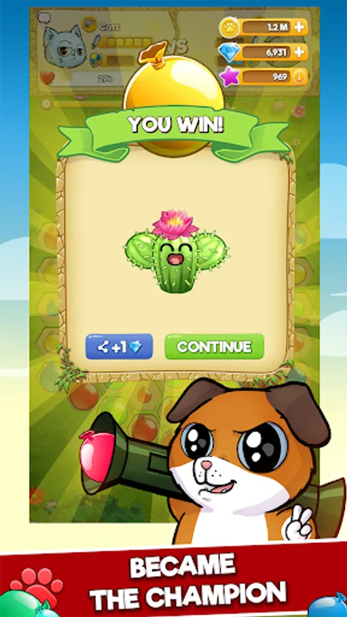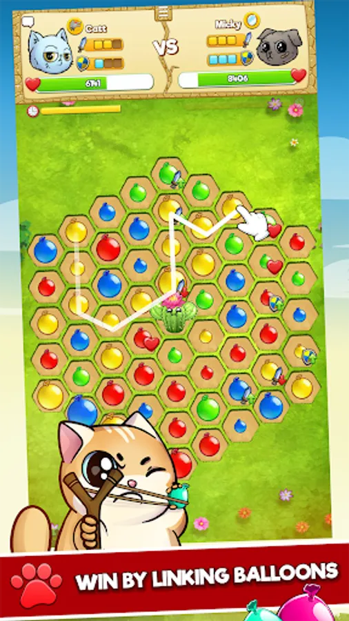 Download for FREE "CUTE WARS PUZZLE BATTLE – Cats vs Dogs Match 3 ", and start joining balloons to beat your opponents in this addictive challenge of mental agility!