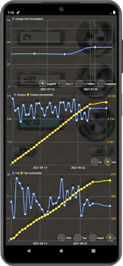 Additionally, it keeps track of all measurements you take thus you can use it as a diary of distance you traveled or fuel you used.