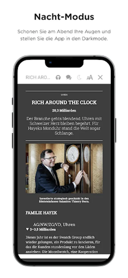 A new area in the app offers you "News from quorum.ch". You will be surprised with personalized, researched business journalism, picture galleries and luxury for every taste.