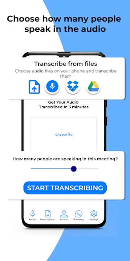 Select how many people are in the meeting and receive a transcription of it. It automatically detects different speakers and marks what each person said. You also receive a link to the transcription which you can share with meeting participants easily.
