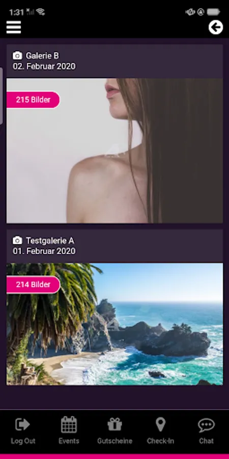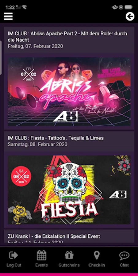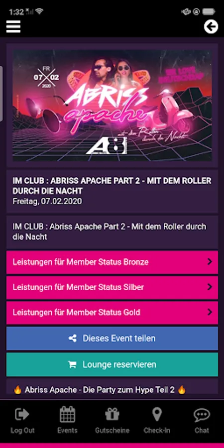 - If you are checked in for an event, you can upload and share party pictures with one click (after internal review)