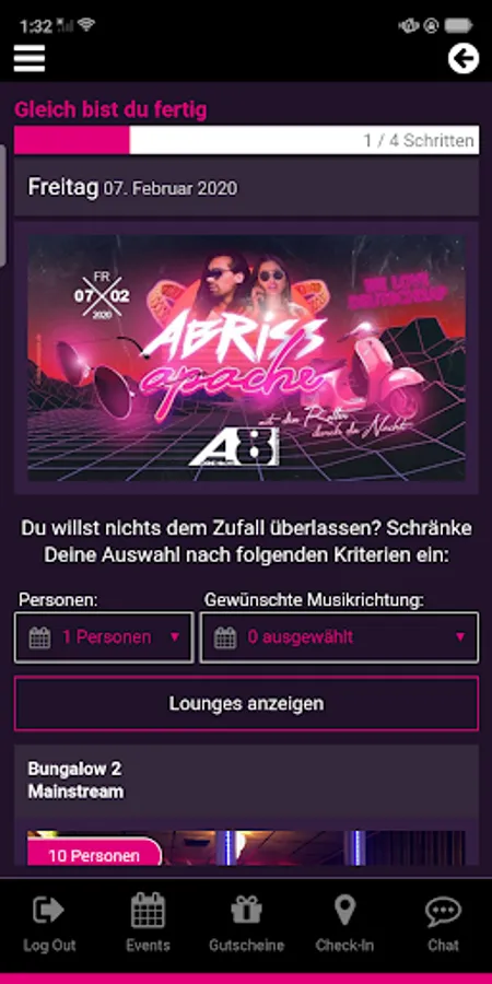 - Find out more about our planned events, special opening days, music styles, DJs, special services, bookable and free lounges and tickets