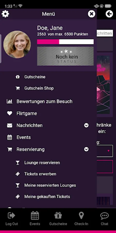 - take part in our flirting game, show other guests that you want to meet them (like) and chat with other guests (only after mutual agreement / like)