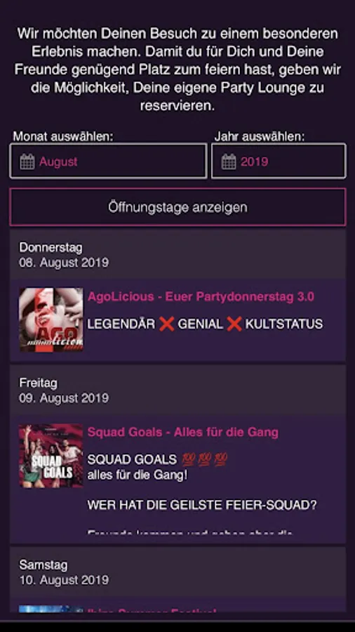 The free Agostea Karlsruhe App is your mobile party guide and always informs you about the upcoming nights at Agostea Karlsruhe. Go through the last party pictures or read the latest news.