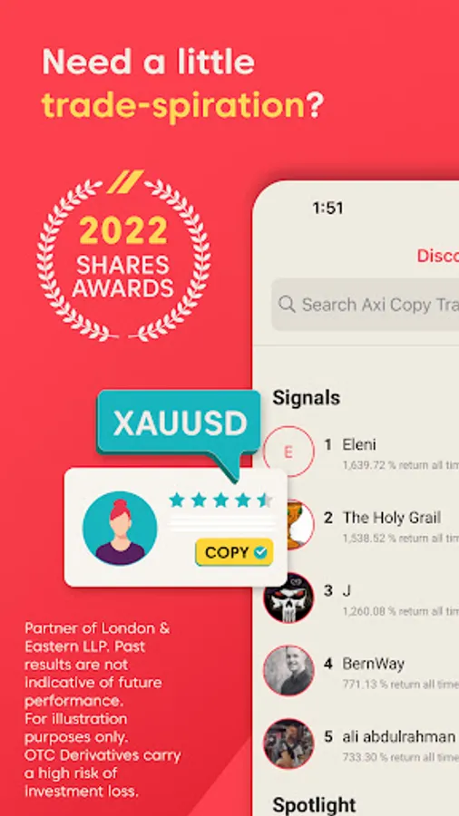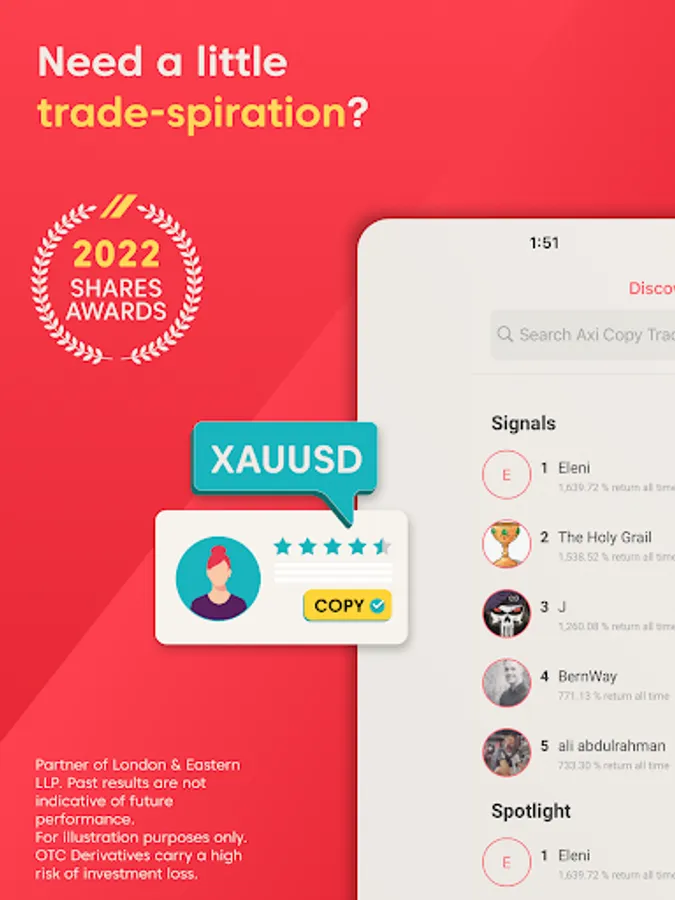 The Axi Copy Trading App is provided in partnership with London & Eastern LLP which holds the relevant regulatory permissions to offer copy trading.