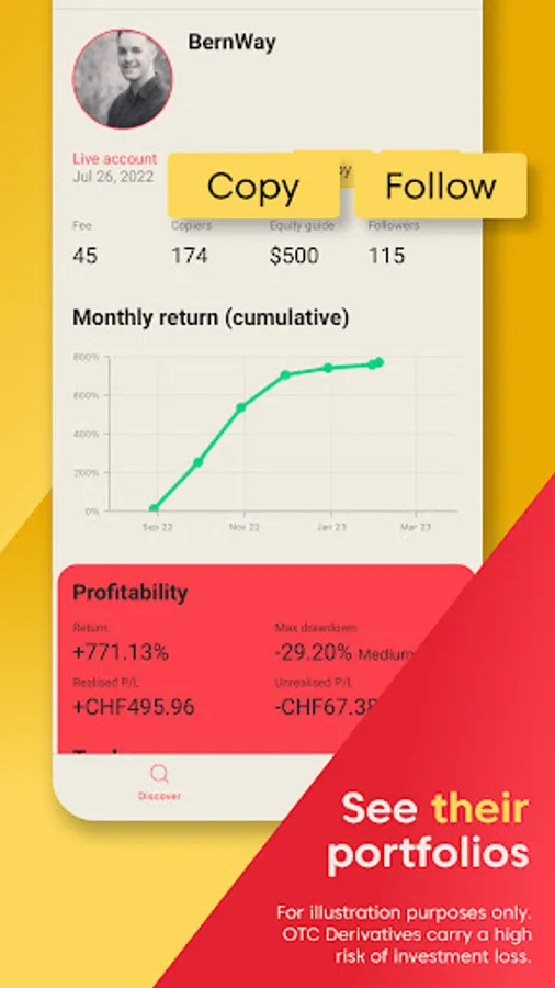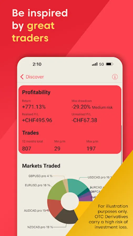 Filter traders based on what’s most important to you, including profitability, risk tolerance and asset type.