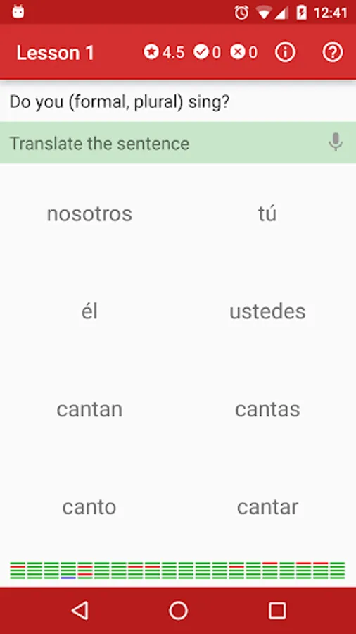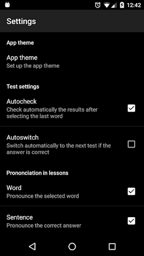While you are making the sentence, all the selected words are pronounced. Then the correct answer is read aloud.