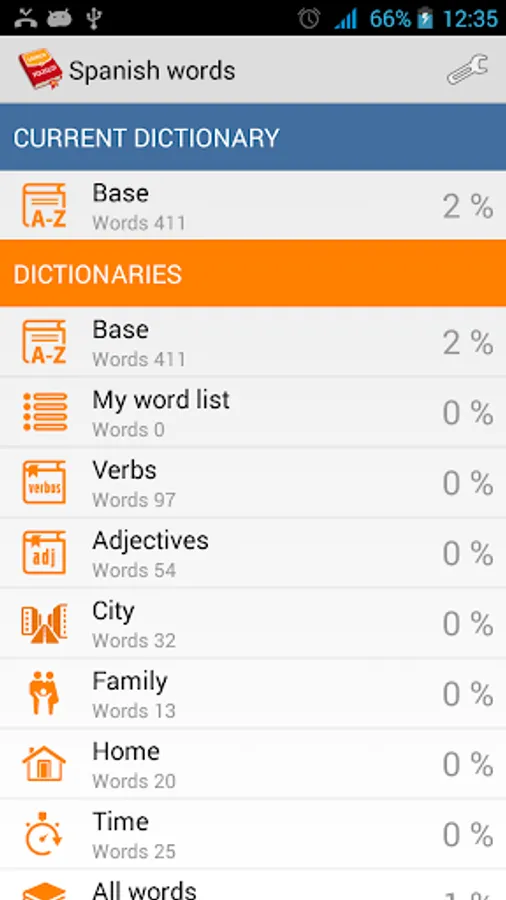 Now there are about 650 most popular Spanish words and words from "Polyglot. Learn Spanish" app. 9 word lists are available: