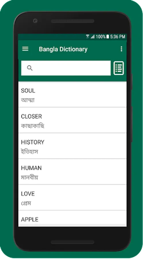 english to bengali dictionary allows you to search words without internet connection. This english to bangla dictionary offers bangla meaning of more than 1,50,000 english words.