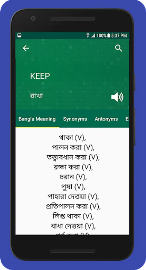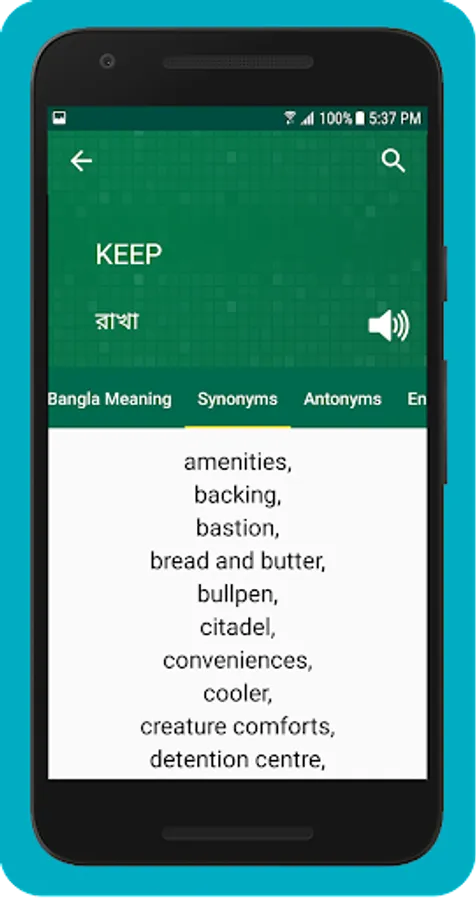 If you would like to hear the searched word this english to bangali dictionary can pronounce it for you.