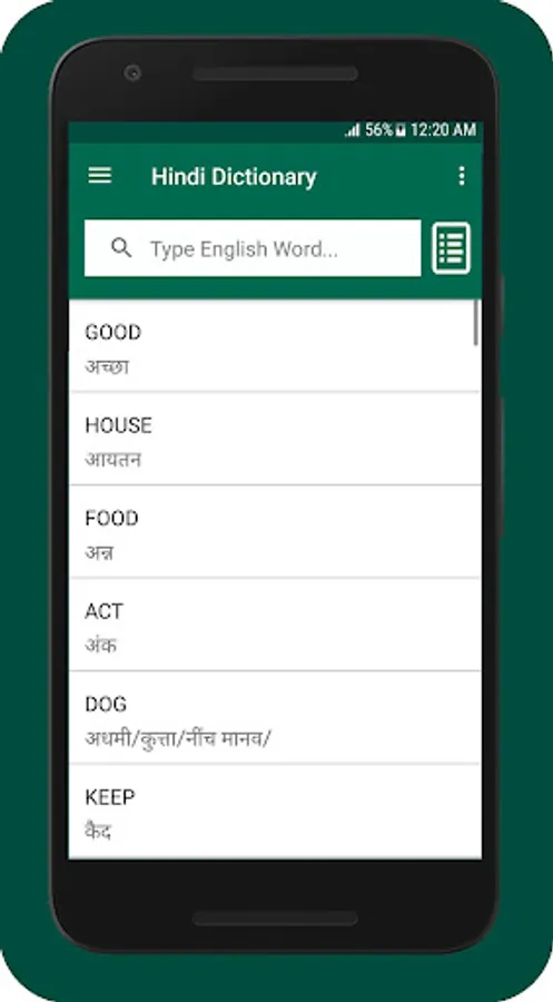 Main attraction of this english to Hindi dictionary is you can search easily and find lot's of details about that particular word.