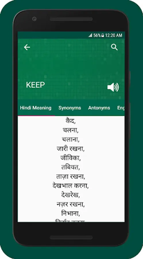 If you would like to hear the searched word this english to hindi dictionary can pronounce it for you.