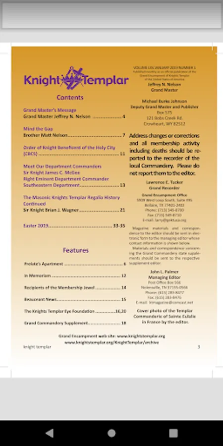 The Editor of Knight Templar would like to publicly thank the Sir Knights who contributed copies of the Knight Templar magazine from their private collections or who volunteered to do so in order to help us make every issue of the magazine available on-line for our posterity. These knights were willing to sacrifice their personal collections for the good of us all and the Templar legacy - Truly chivalrous! --Editor