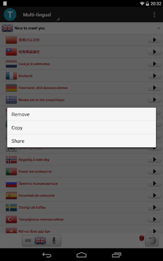 Use long press menu operation of translation data.