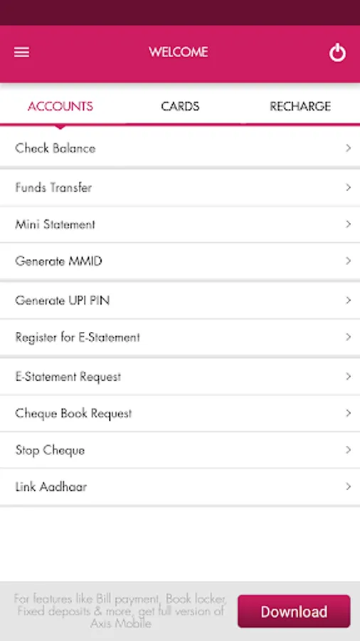 Axis Bank presents Axis OK - a simple and easy-to-use multilingual app which works without the internet. No Login/Password is required as the app works with your mobile number registered with Axis Bank. With Axis OK you can get access to your bank accounts, debit/credit cards and many other products. Some of the features available on the app are: