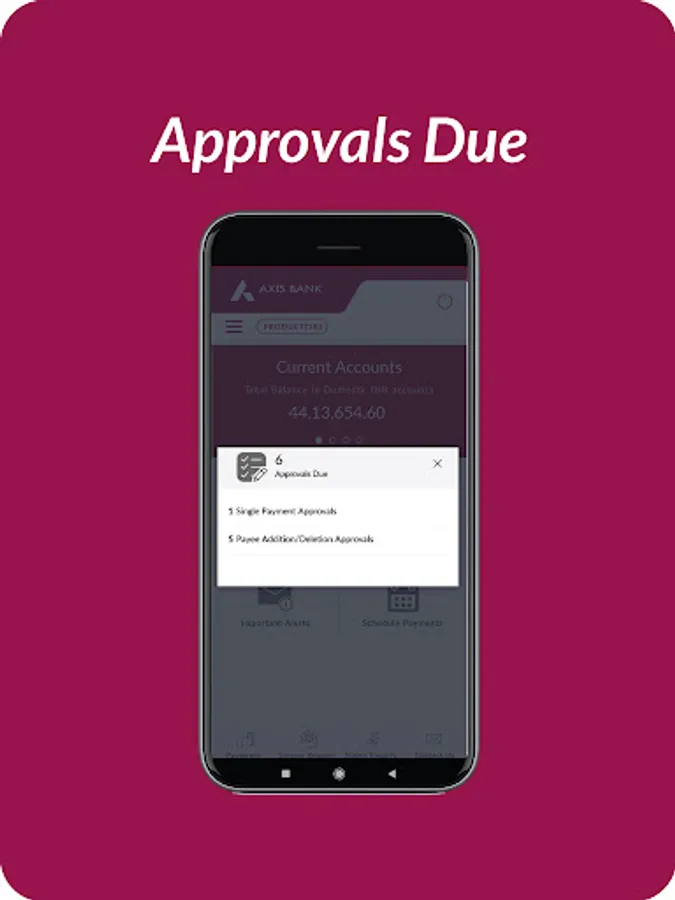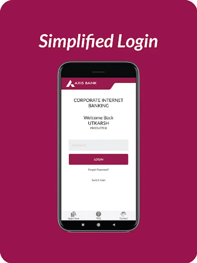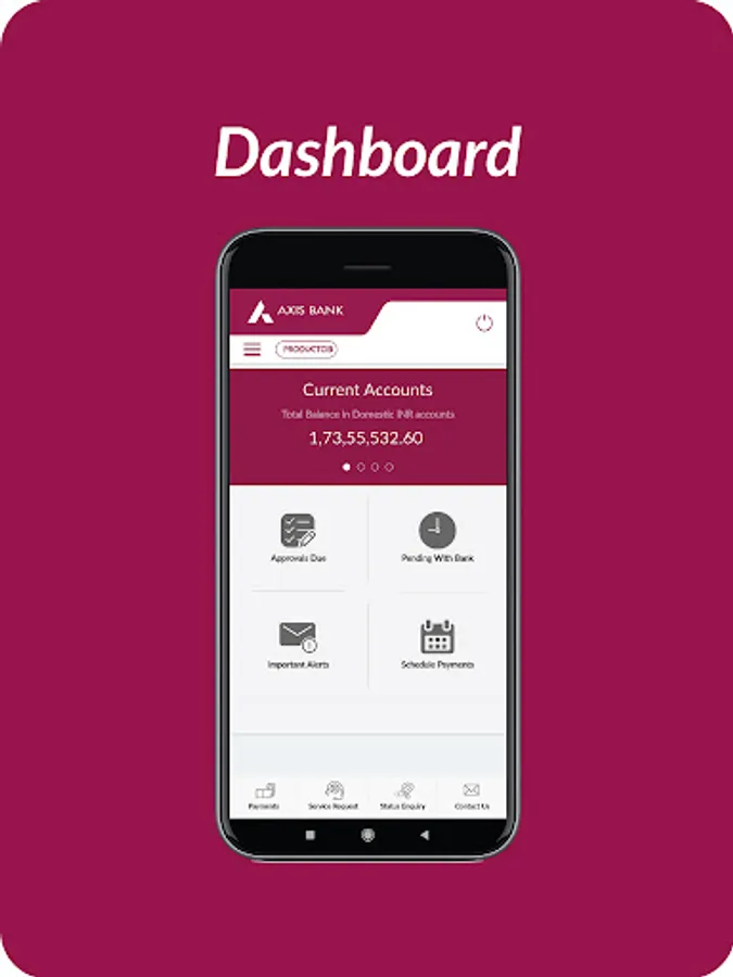 Axis Mobile - Corporate is our official Corporate Mobile Banking Application. It is an exclusive app for our Corporate Internet Banking customers to oversee and execute daily transactions digitally, 24x7. It is safe, secure and convenient to use with a host of features to control your business accounts and finances at the tip of your fingers.