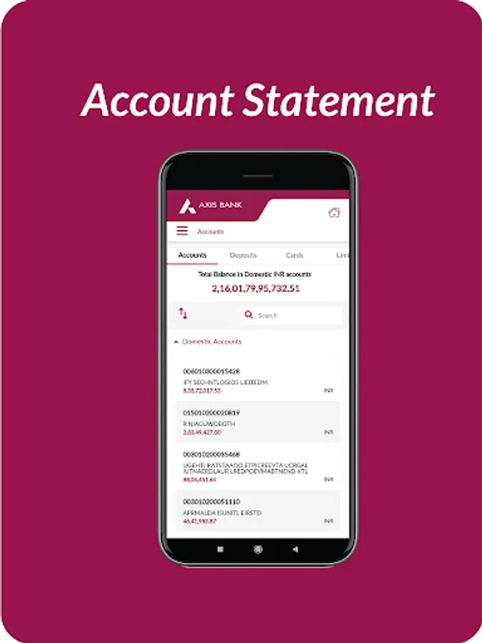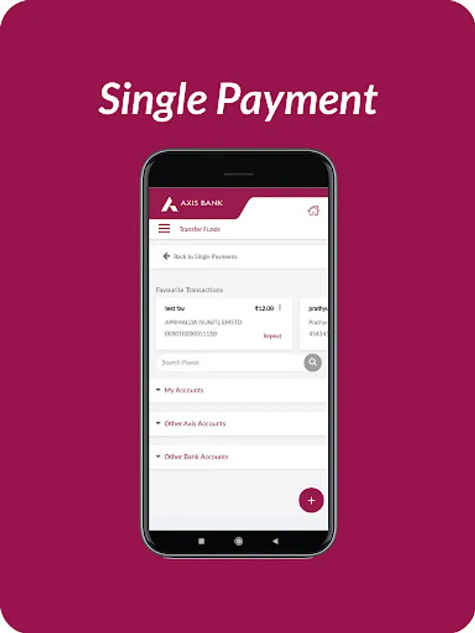 • Transact within your linked Axis Bank accounts or to other Axis Bank accounts