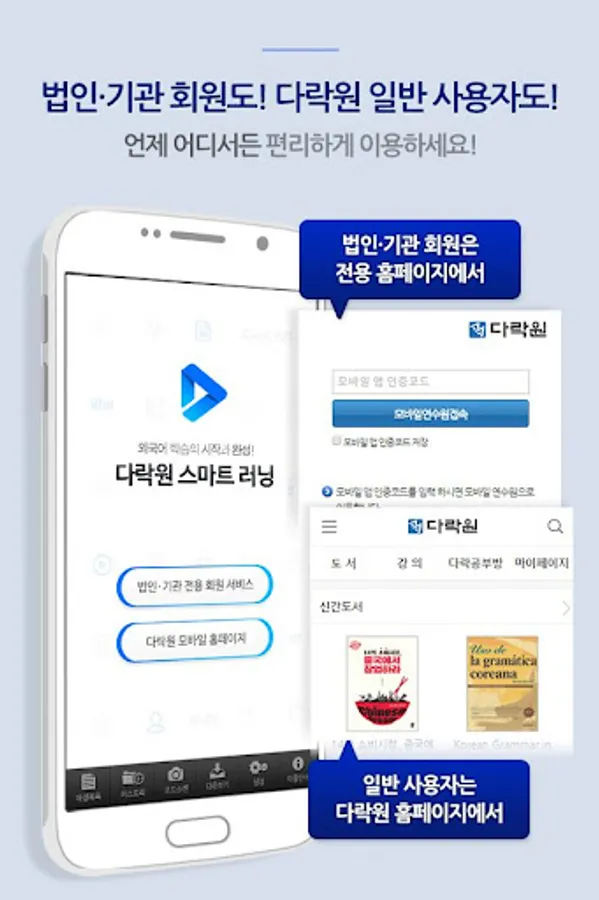 - General users through the website Darakwon, corporation, institution member, you can download the video lectures and MP3 by logging in through a dedicated website.