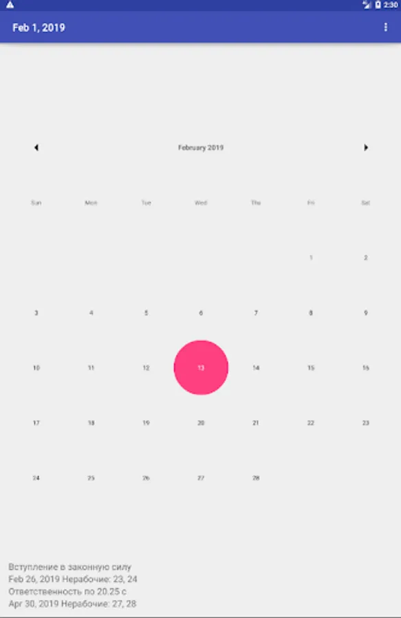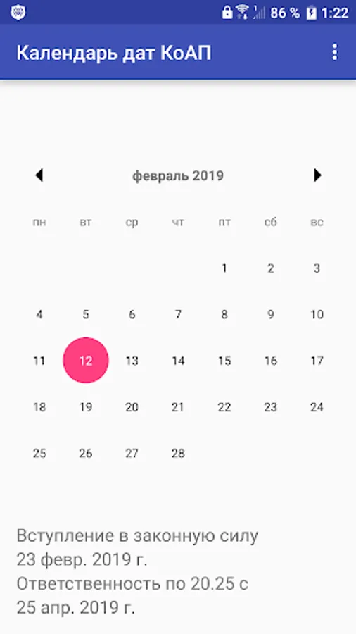 The program calculates the date of entry into force and the date of commencement of attraction under Part 1 of Art. 20.25 Code of Administrative Offenses The date of delivery of a copy of the decision on the case on administrative proceedings is selected from the calendar. The calculation is made taking into account weekends and holidays in 2019, in accordance with the provisions of the Administrative Code of the Russian Federation.