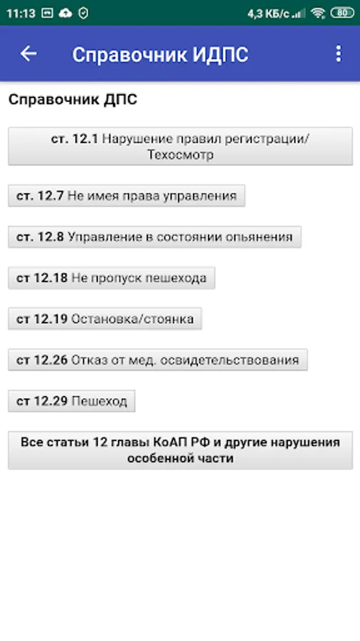Background information for the traffic police traffic police, all that is needed in official activities for the preparation of administrative materials: excerpts from the Code of Administrative Offenses of the Russian Federation, traffic rules of the Russian Federation, other legislative acts, orders of ministries. Typical plot of violations with the relevant paragraphs of the SDA RF. Everything is convenient and at hand. It may also be useful to all drivers.