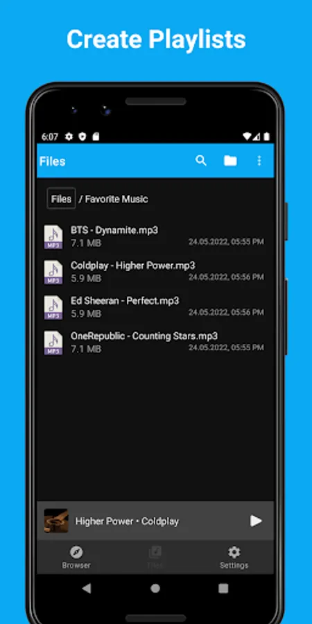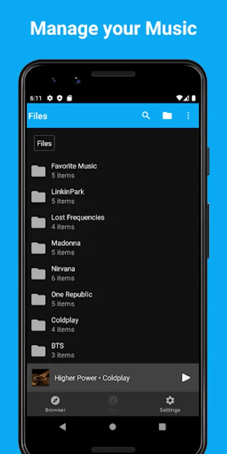 - Use folders to play your music as playlists,