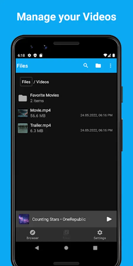 - The Video Player allows you to play your video files inside the app.