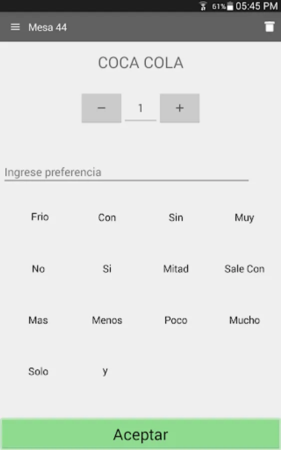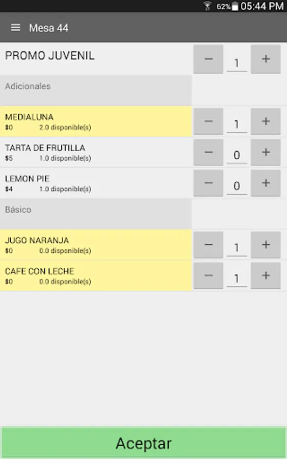 * For each item can register guest preferences (cooked, average, cold, hot, etc.)