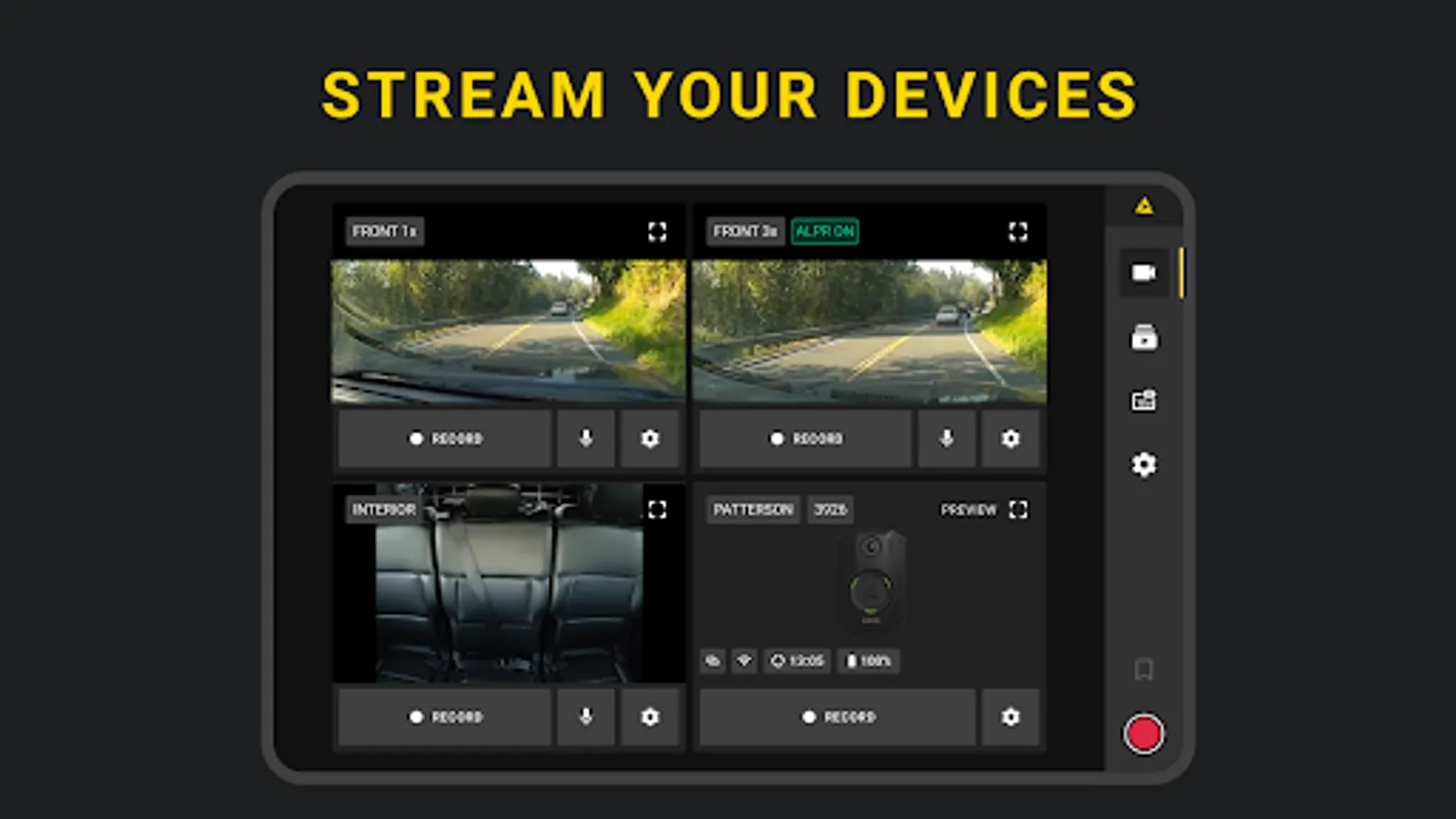 Axon Fleet Dashboard enables users to manage their Axon Fleet cameras, play videos, add meta data and supports the Axon Automatic License Plate (ALPR) system notifications and responses - all from their mobile device. Additionally, users can start/stop recording, add metadata, priority upload evidence files, and make configuration adjustments for Axon BWC products.
