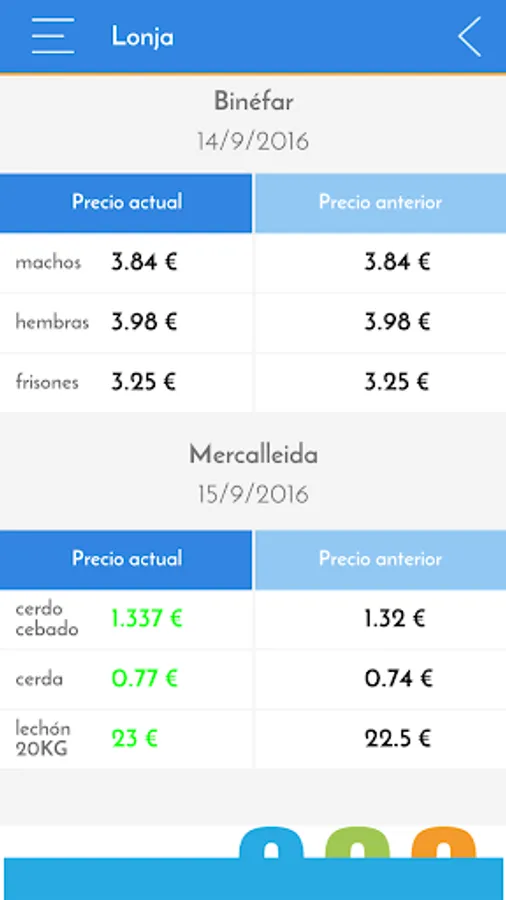 - Lonja: with an updated quotes summarize the main livestock species.