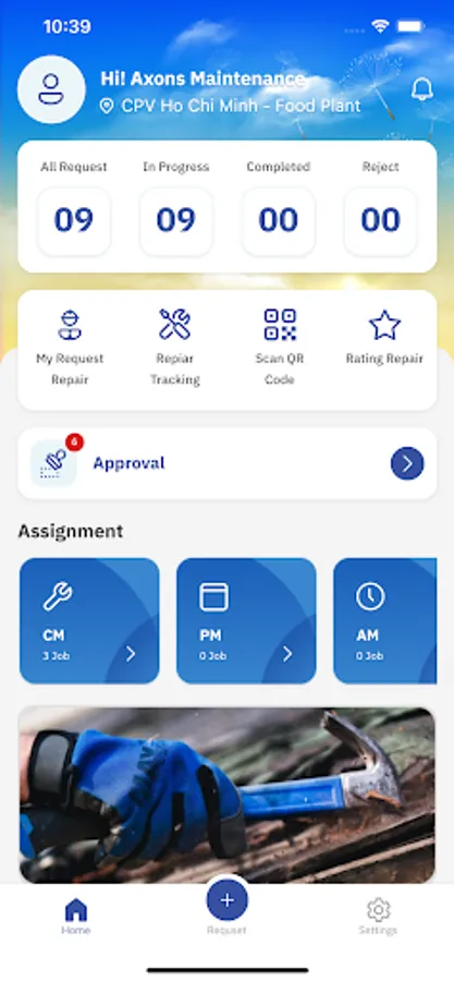 Axons Maintenance provides machine maintenance services. There is a repair notification feature. notify mechanic Able to go in and repair the machine in a timely manner
