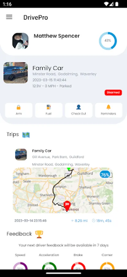 This is a companion app for the DrivePro.io Fleet management product providing realtime tracking of vehicles, allows alerts to be received directly from your phone, and gives drivers the ability to log in and out of vehicles and see upcoming reminders for their vehicles.