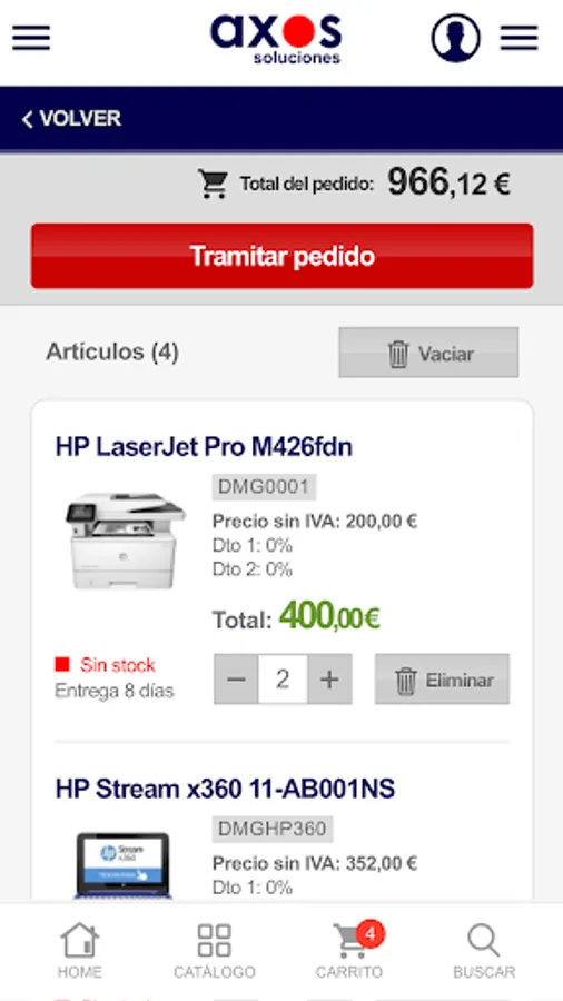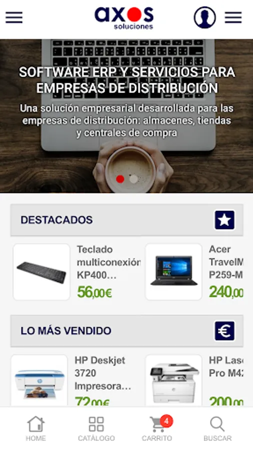 This free APP is a demo of our solution connected to a test area. In http://demo.axos.es/ you can see the web version of the e-commerce platform also integrated with the test ERP.