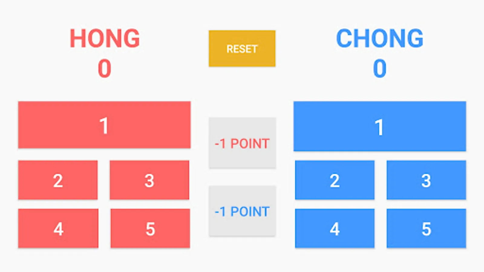 It has three types of counters for the combat part: basic (one button for each competitor), medium (three buttons per competitor) and advanced (5 buttons per competitor); and a counter for tulle, with the options of: red winner, tie and blue winner.