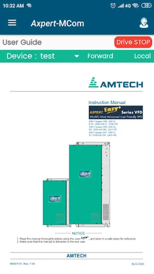 This application is designed to monitor Axpert-Eazy+ Series VFD from your android phone. User can monitor all the parameters, current status and fault history of the VFD. The app can also be used to upload/download parameters to and from VFD.