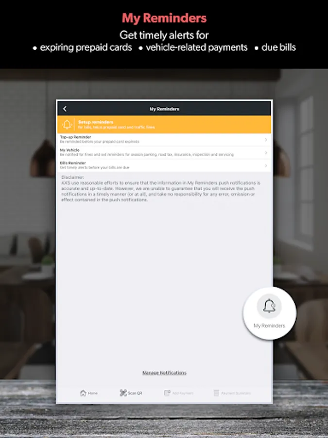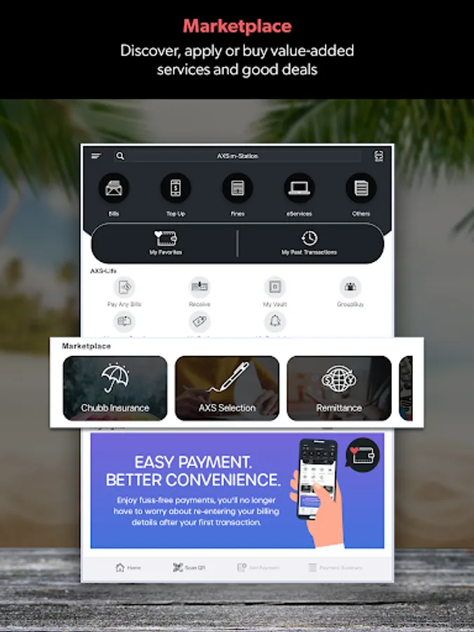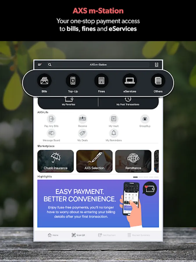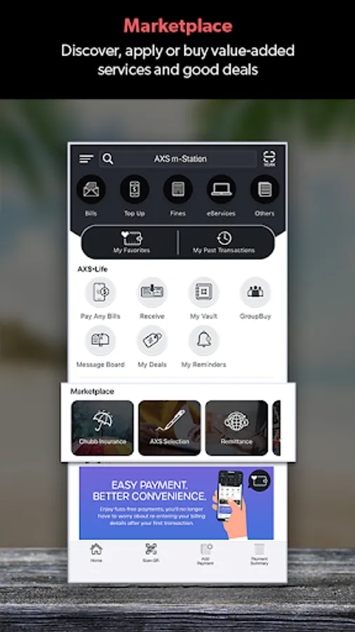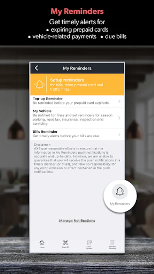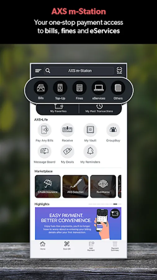 - Reminder services for bills payment based on your past payment timing on AXS m-Station.