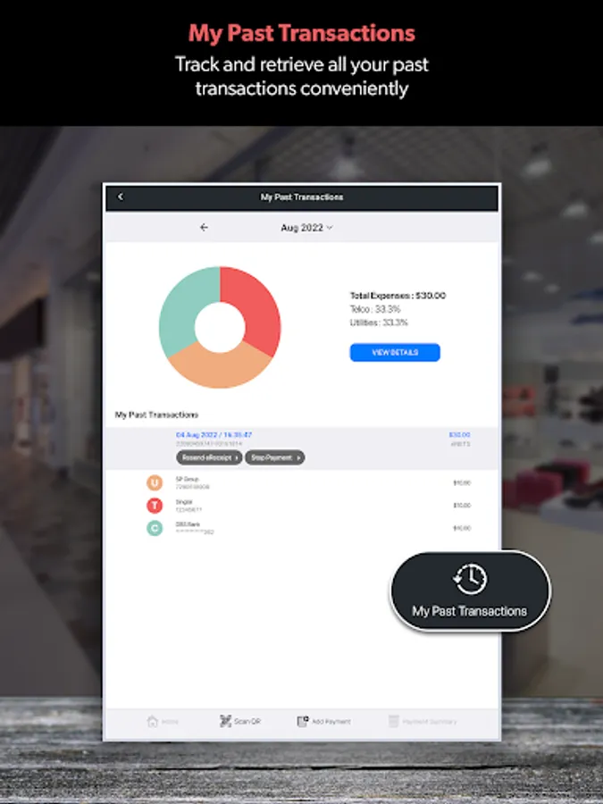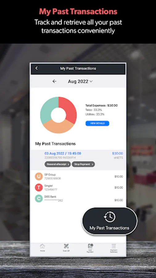 - Track and retrieve all your past payment history conveniently under "My Past Transactions".
