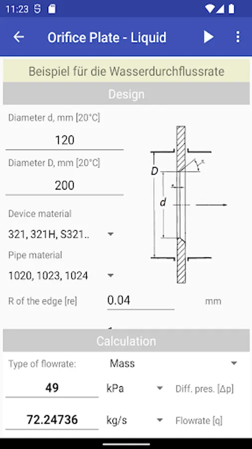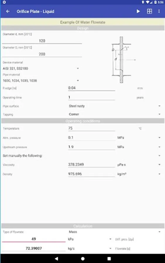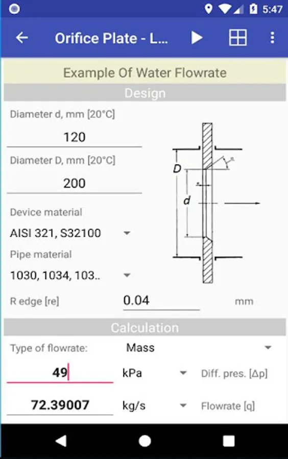 - Primary devices for flow measurement. Calculation of differential pressure on the primary device, depending on the flow rate of the substance and vice versa. It is based on the standards GOST 8.586.1-5-2005 and ISO-5167.