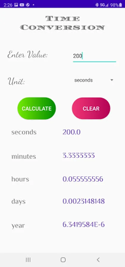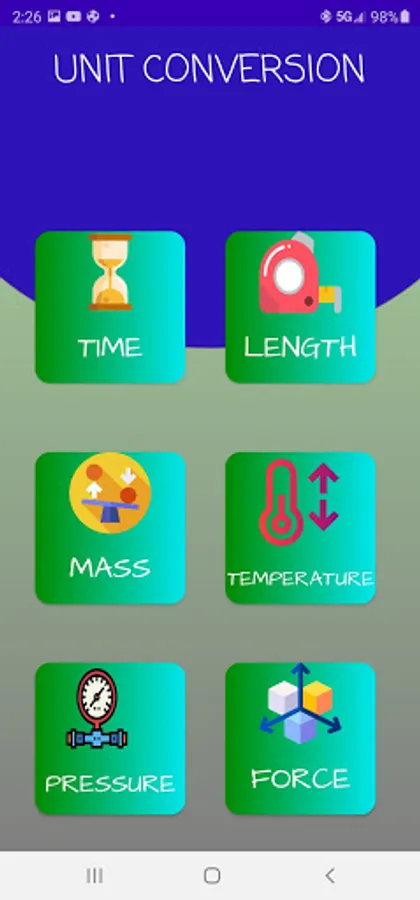 With the help of our app, you can Convert certain units of Time, Length, Pressure, Force, Mass, and Temperature.
