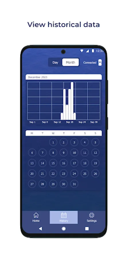 History: Daily Hydration stats are kept in history for you to monitor your hydration goals over time in daily and monthly view