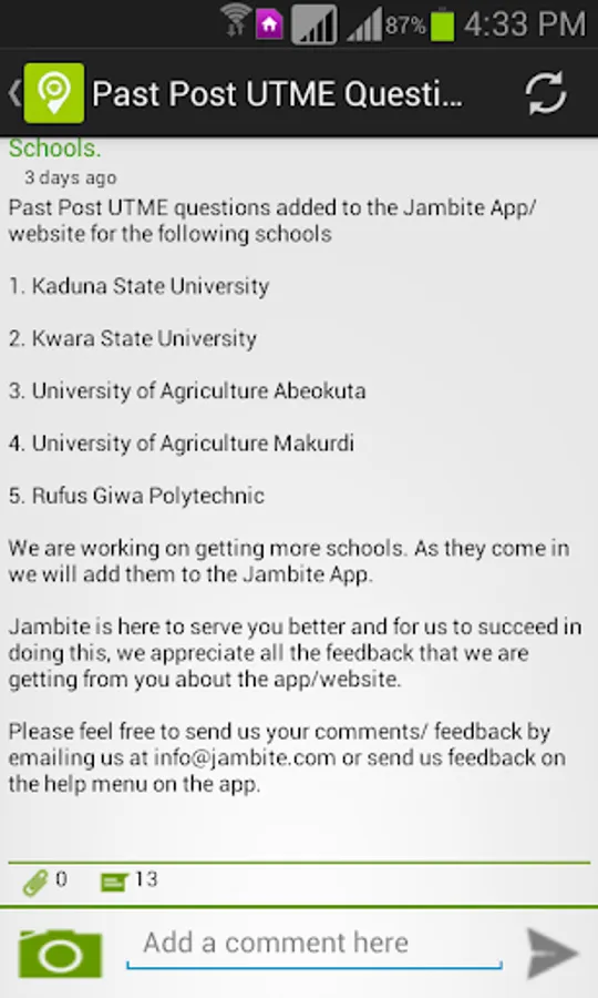 Improve your score on JAMB, and WAEC a little every day with the Jambite app. We offer free past questions, a Jamb result checker, post-utme questions and other learning tools to help you achieve your goals.