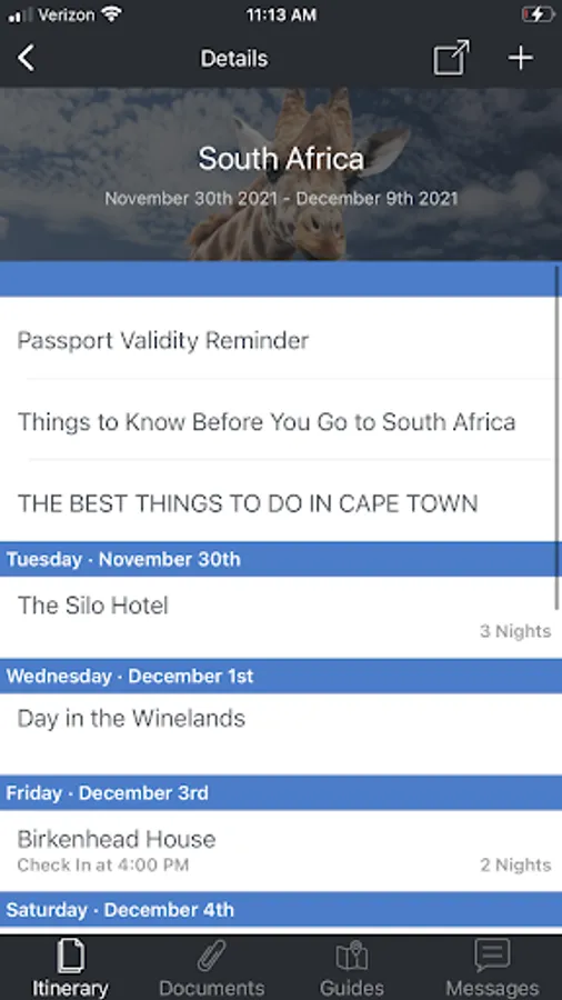 - Old travel itineraries remain on the app to provide inspiration for the future and to share details about your trip no matter where you go.