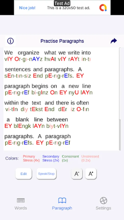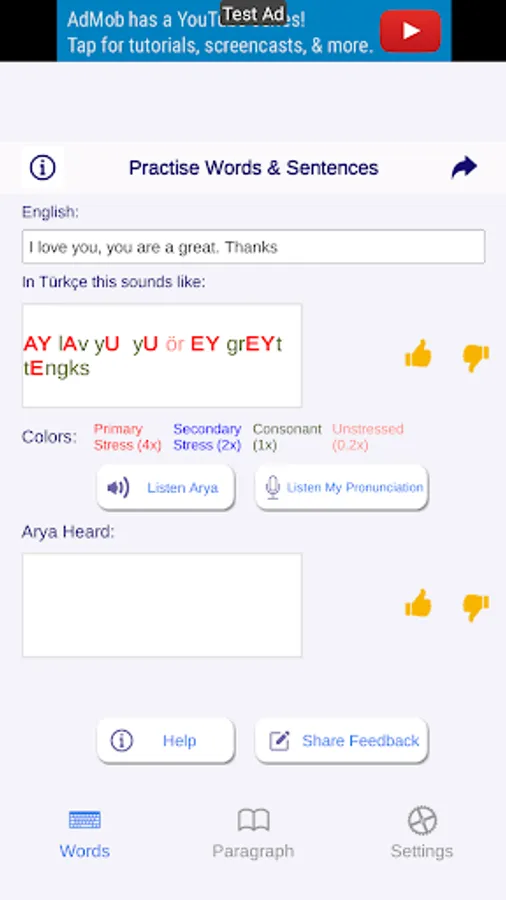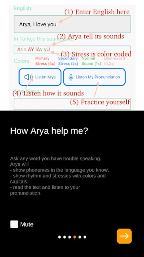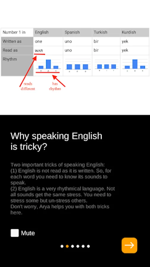 Arya shows the sounds and stresses on English clearly. It use the alphabet you know and mark stresses with colors. So, if you can read, you can speak English too.